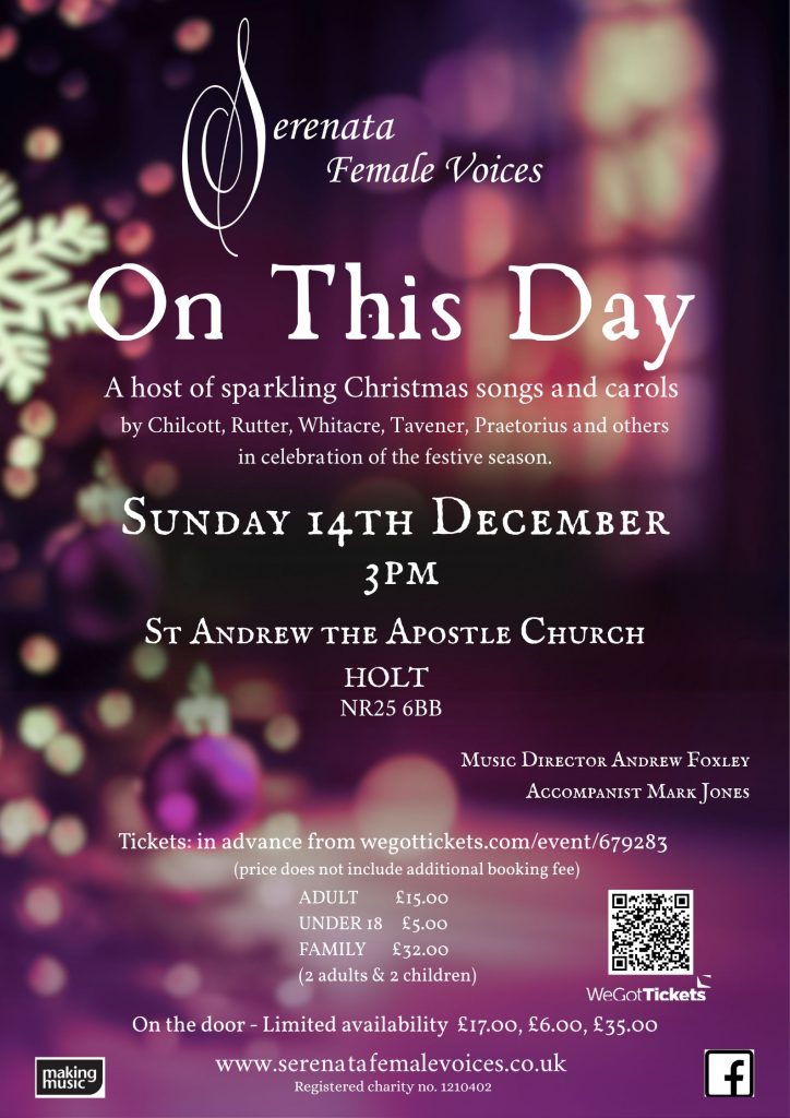 Start your Christmas with a host of sparkling choral gems arranged for upper voices. Serenata bring you traditional and modern classics, alongside old favourites and carols, including works by John Rutter, Bob Chilcott, Eric Whitaker, Edmund Jolliffe, Andrew Parnell, John Tavener, Praetorius and others, in celebration of the festive season. What better way to give a warm welcome to the spirit of Christmas!